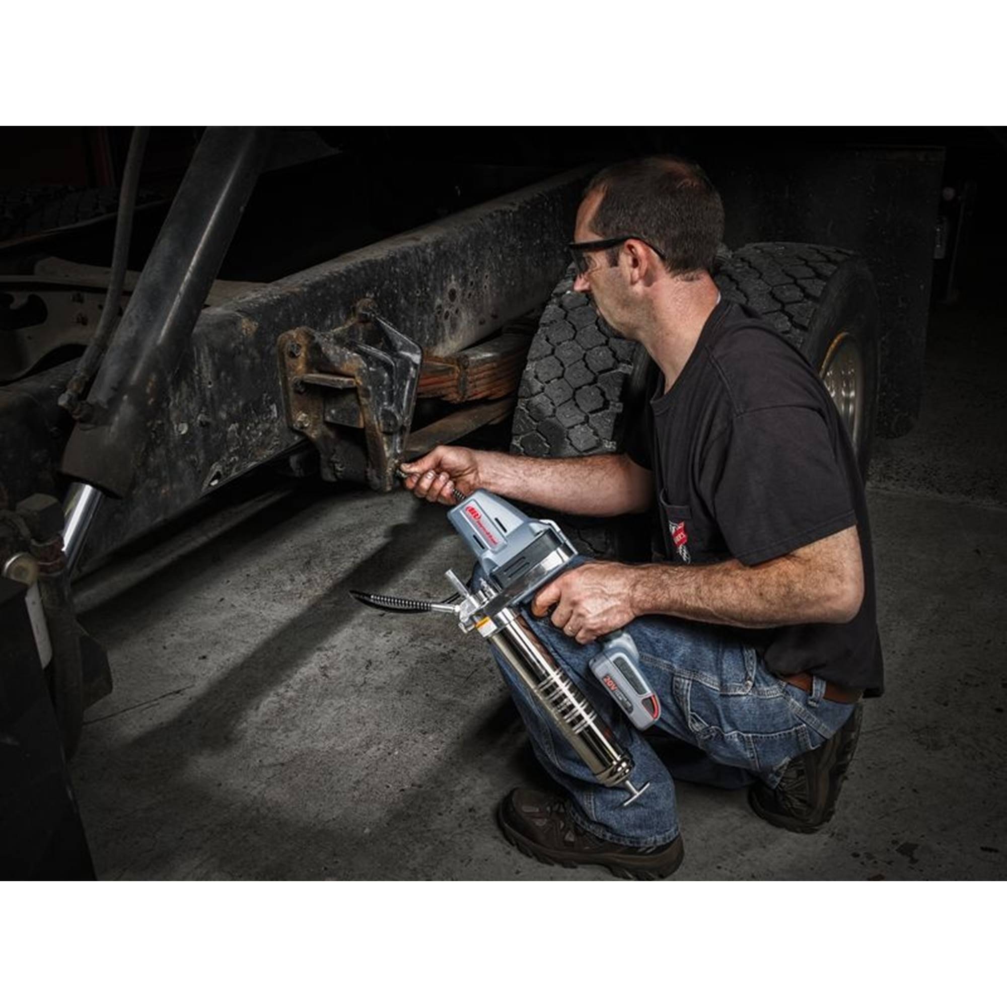 Batterifettspruta 20 volt Li-Ion batteri. 2-stegs pump som säkerställer funktionen även vid kyla.