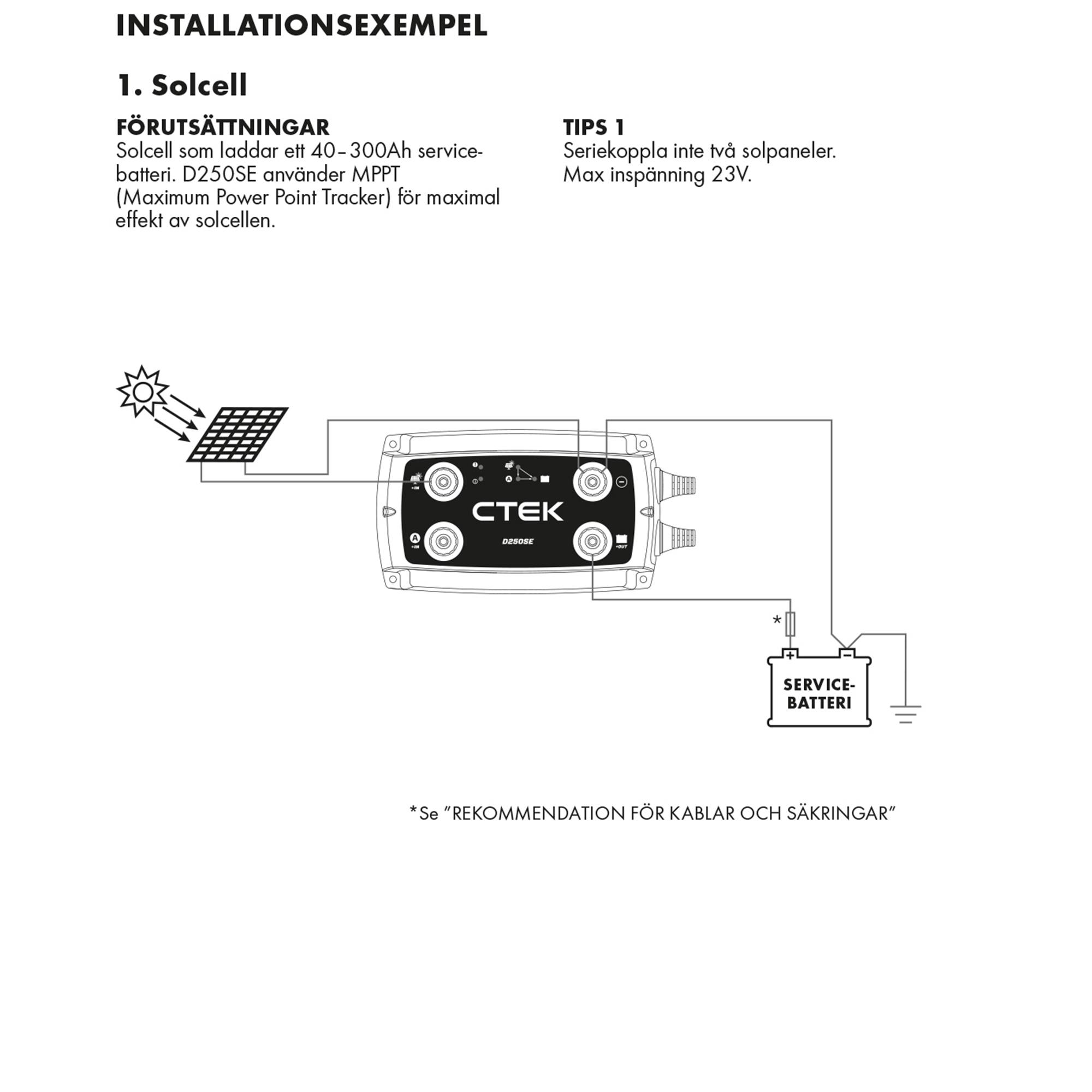 D250SE med dubbla ingångar och prisbelönt svensk teknik kan dra ström från smarta generatorer och andra likströmskällor, vilket gör den till den perfekta laddaren för fordon som inte har tillgång till ett elnät. De dubbla ingångarna innebär att den kan dra ström parallellt från sol- och vindkällor till generatorn. D250SE är en helautomatisk femstegsladdare som levererar upp till 20A för laddning, konditionering och underhållsladdning. Den har valbara laddprogram för AGM- & litiumbatterier.