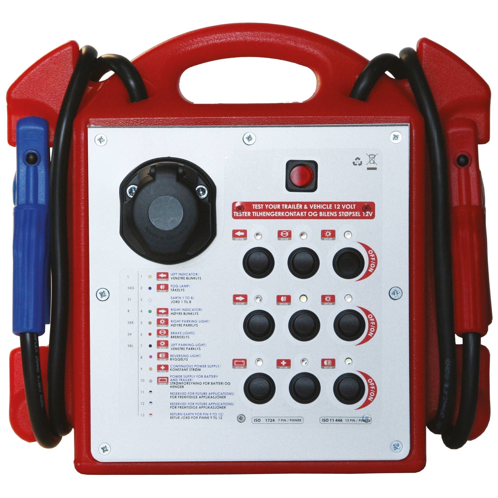 Startbooster Attack 3140 med ljustestare. Ett måste för alla verkstäder, garage, uthyrare, bensinstationer m.fl. Testa släpvagnskontakten på bilen och se så att den fungerar. Du kan även testa belysningen på släpvagnen och se så att alla lampor fungerar. Du kan naturligtvis även använda den som starthjälp. Levereras med 13-polig släpvagnsdosa på startboostern, adapter från 13-polig till 7-polig dosa och 3,5 m spiralkabel med 7-polig stickpropp.