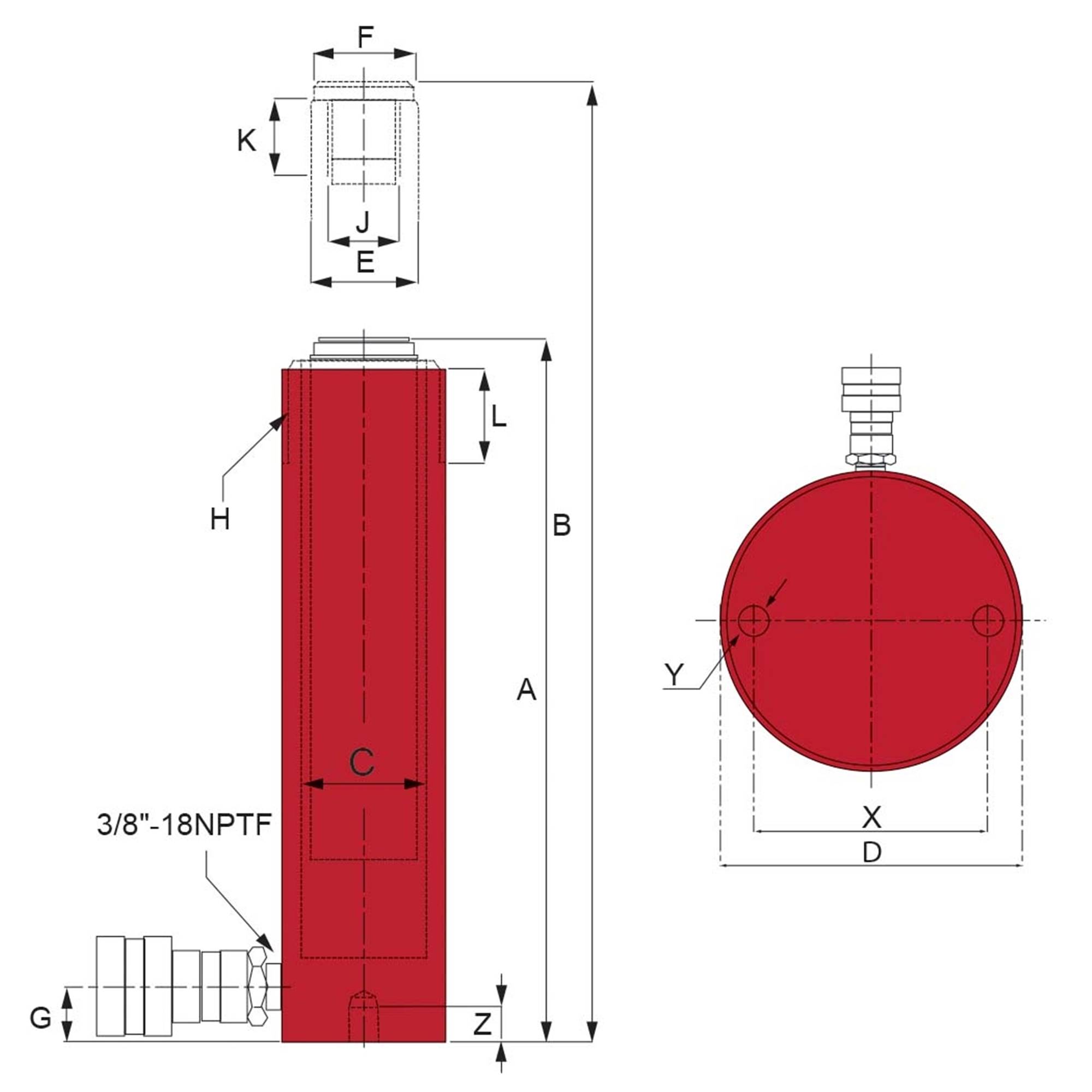 ENKELVERKANDE CYLINDER MED FJÄDERRETUR. KAPACITET 10 TON. SLAGLÄNGD 51 MM.