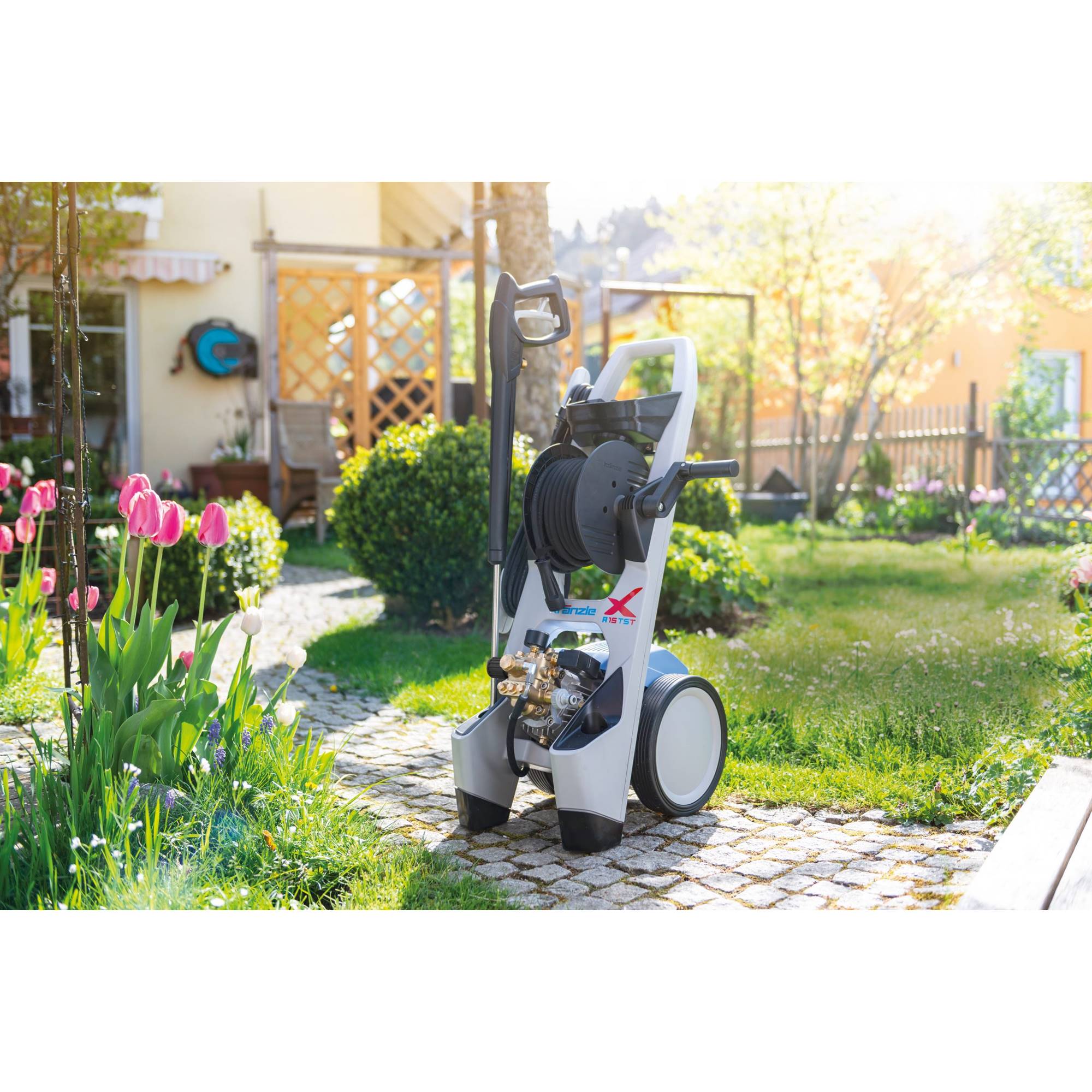 • Tack vare X-formen kan högtryckstvätten användas bekvämt i upprätt läge.