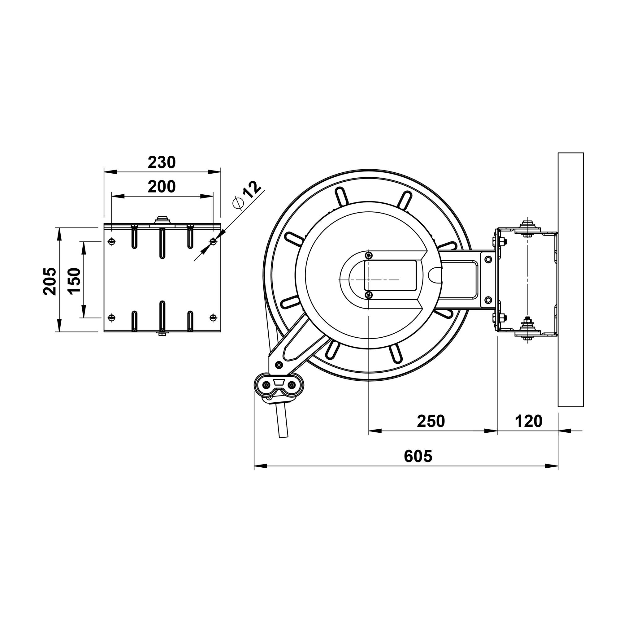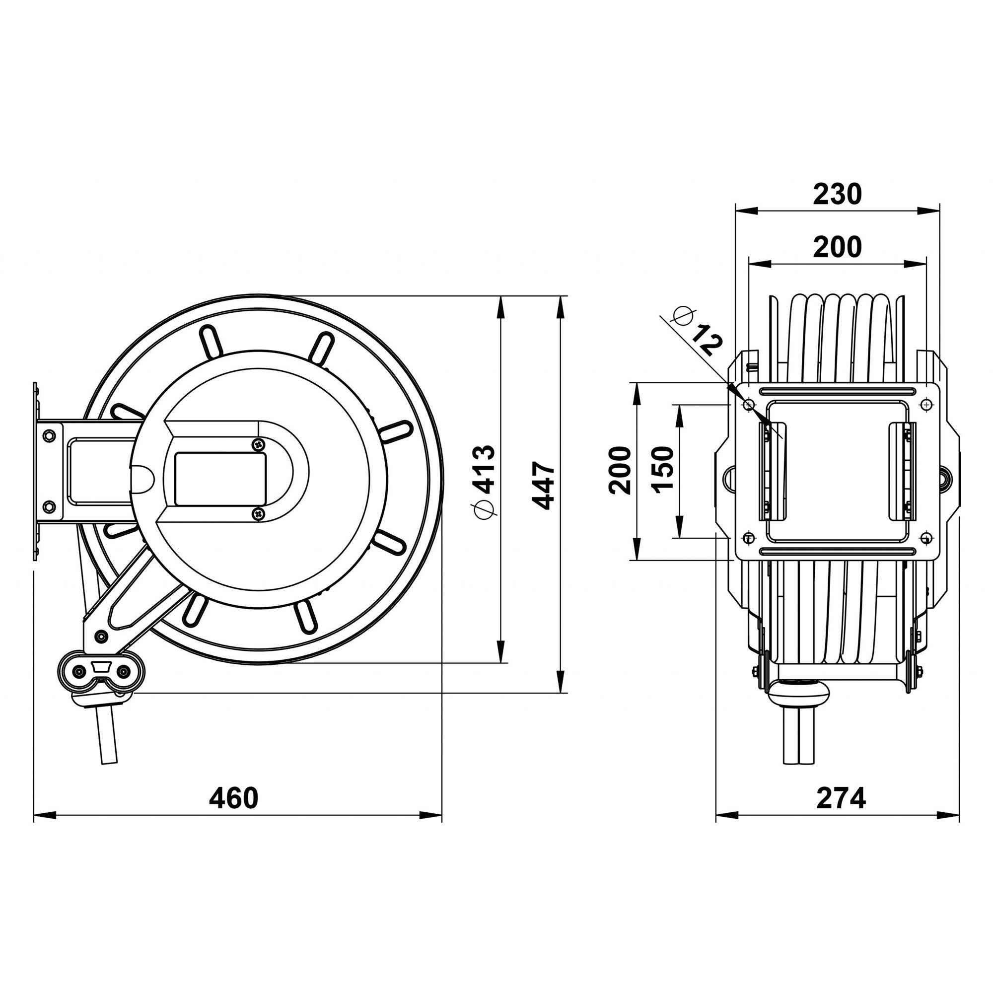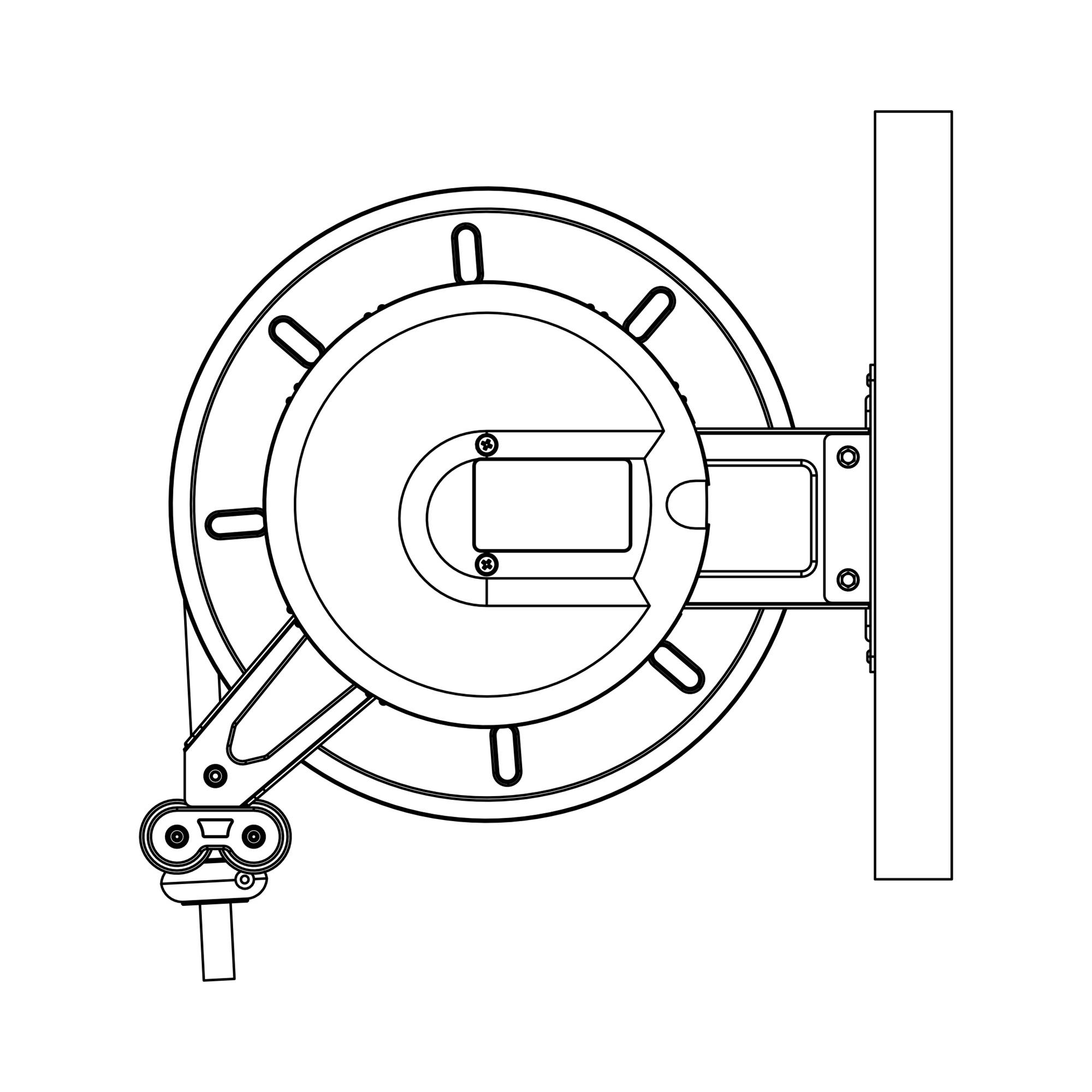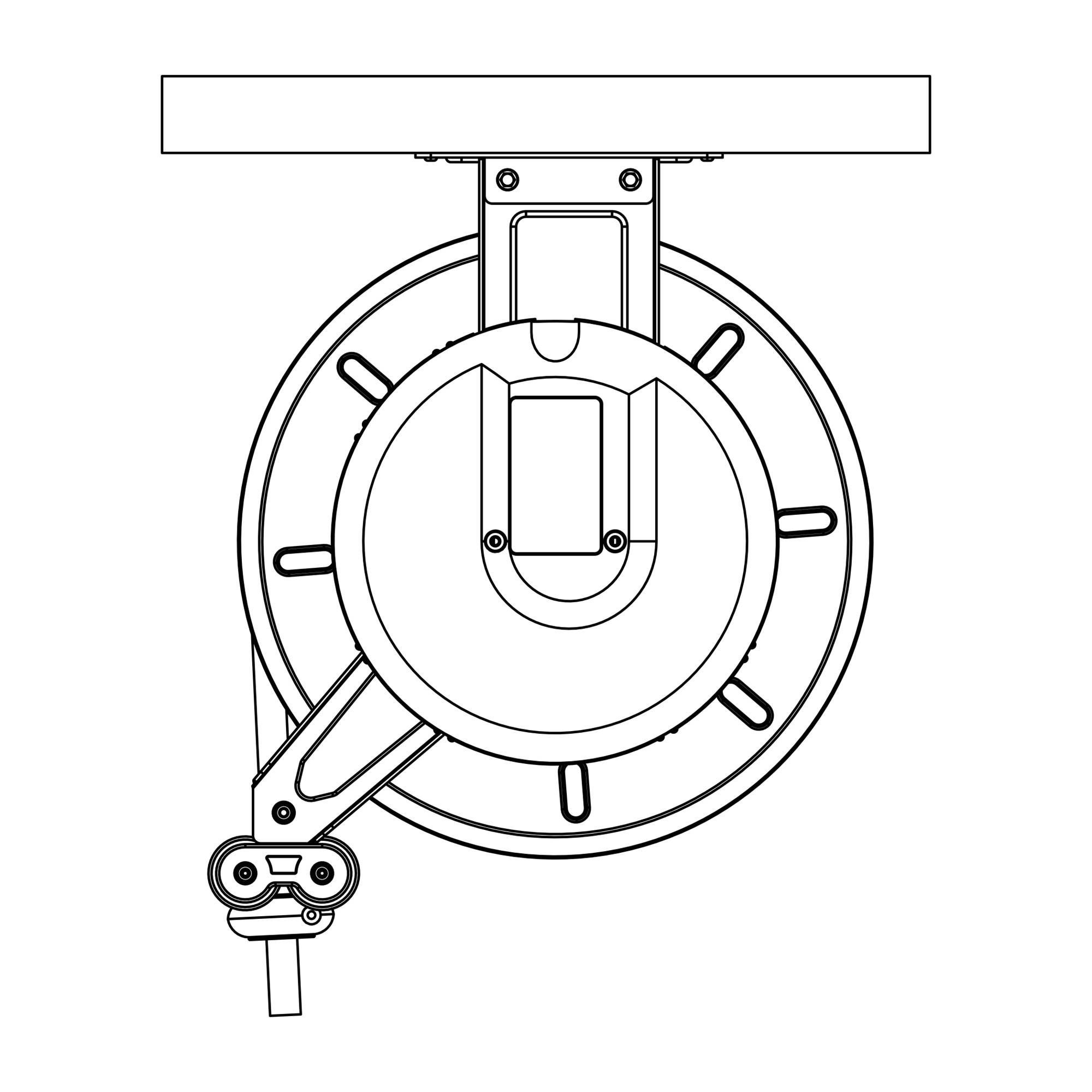 Komplett gasvinda, pulverlackerad med tvillingslang. Den öppna modellen ger bra kontroll på hur slangen vindas upp. Armarna till utloppet kan ställas i tre olika lägen.