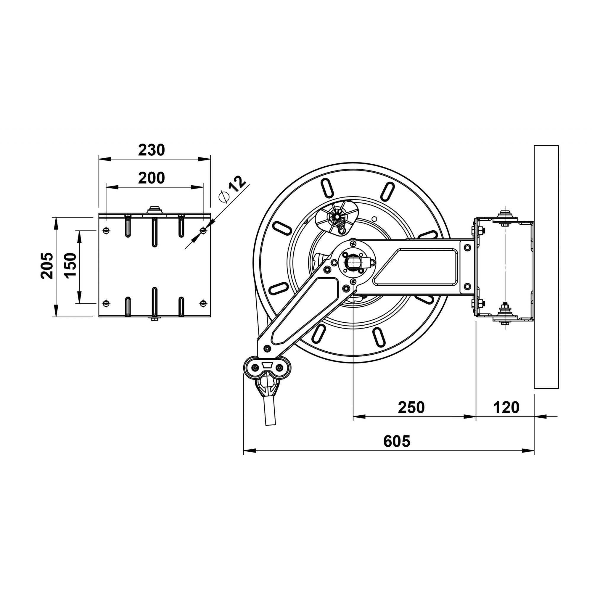 Slangvindor försedda med ställbar arm/slangstyrning. Lätta att placera, även i trånga utrymmen. Kan även takmonteras. Kan kompletteras med svängbart väggfäste om slangen skall dras ut eller matas in i sidled. Slitaget på vindan blir mindre och slangen rullas upp jämnare. Rostfri.