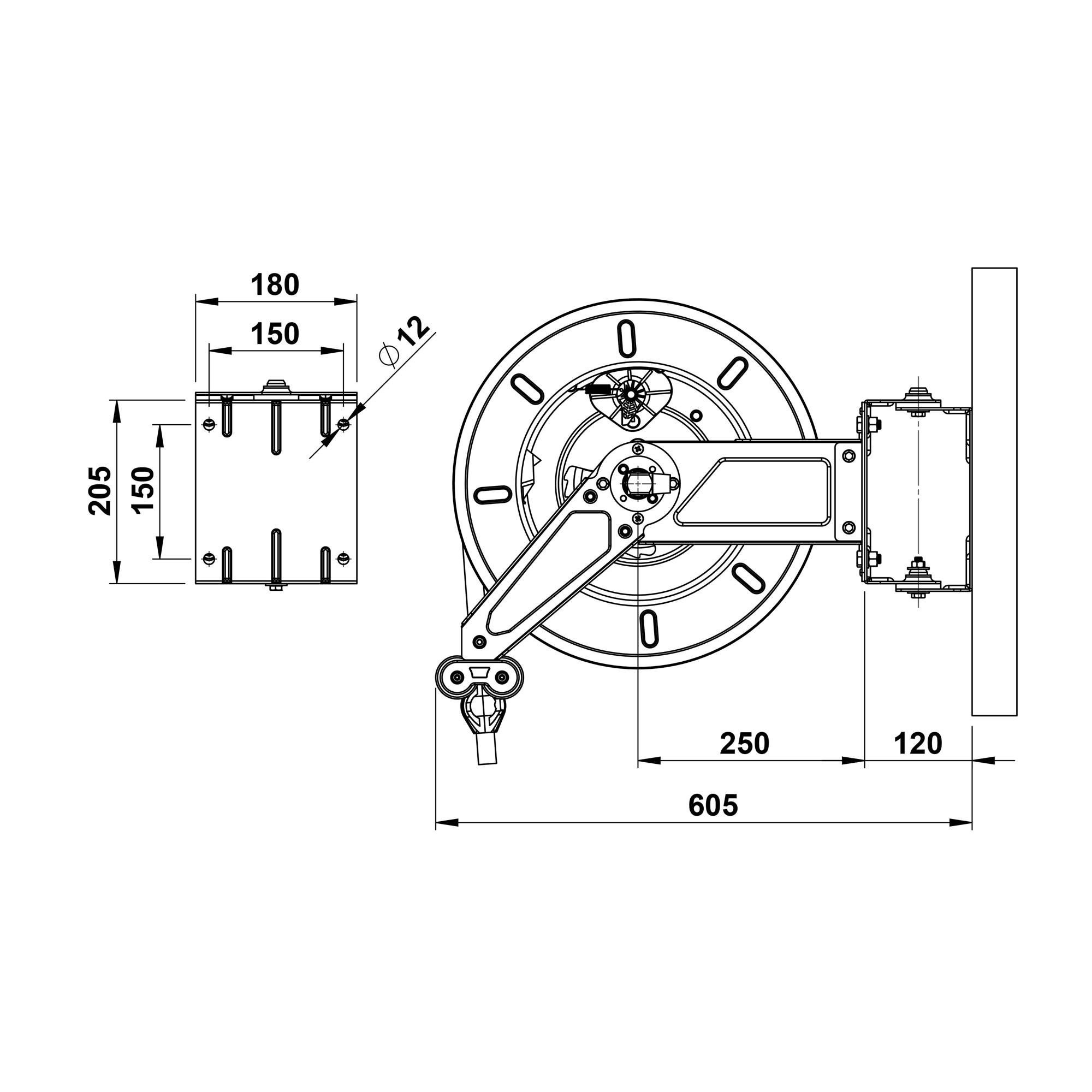 Slangvindor försedda med ställbar arm/slangstyrning. Lätta att placera, även i trånga utrymmen. Kan även takmonteras. Kan kompletteras med svängbart väggfäste om slangen skall dras ut eller matas in i sidled. Slitaget på vindan blir mindre och slangen rullas upp jämnare. Rostfri.