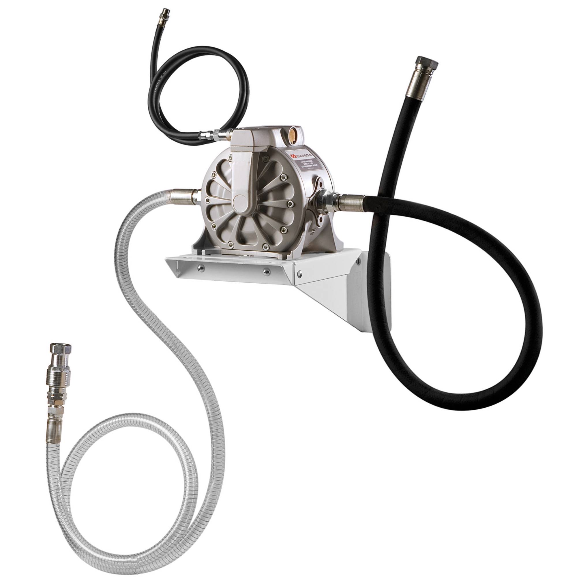 Tryckluftsdriven membranpump med aluminiumkropp. Avsedd för spillolja m.m. Levereras med anslutningsslangar, 2 meter sugslang med snabbkoppling och 1 meter på trycksidan. Väggkonsoll ingår.